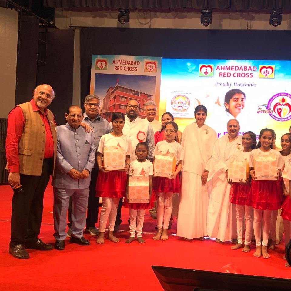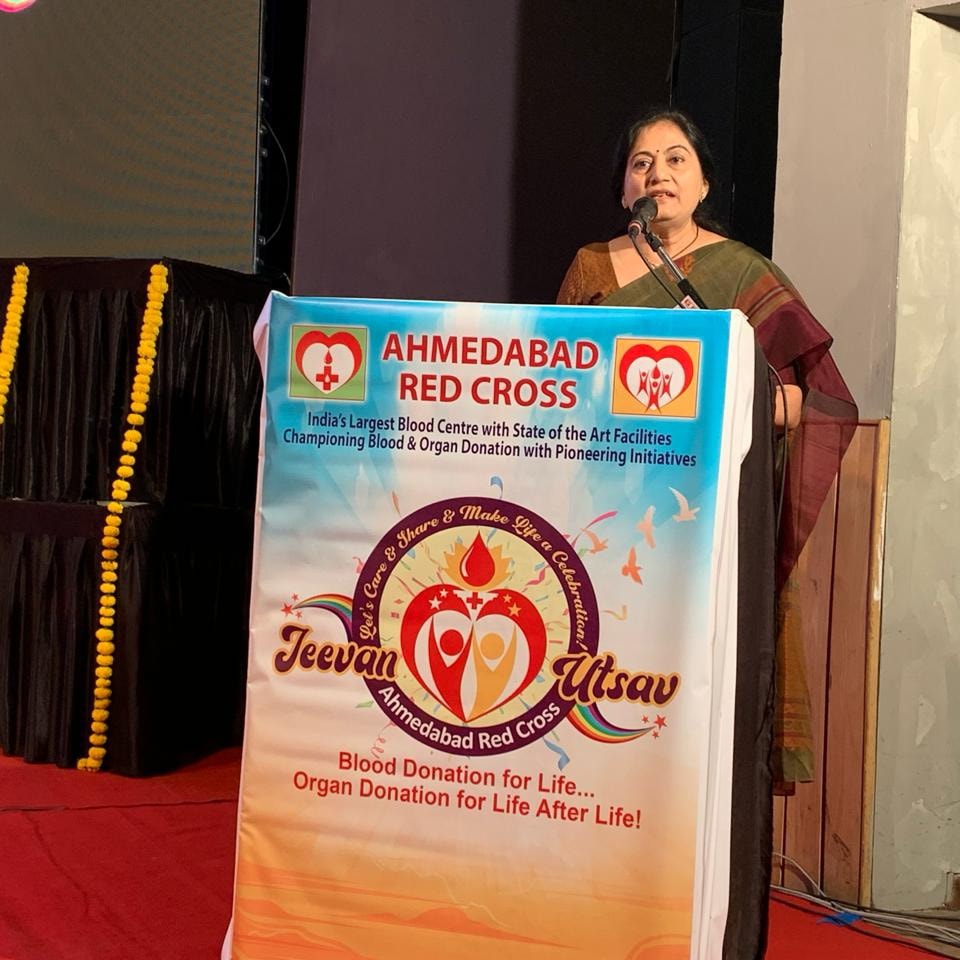 અમદાવાદ રેડ ક્રોસ સોસાયટી દ્વારા તા ૨૬/૦૩/૨૦૨૪ ટાગોર હોલ અમદાવાદ ખાતે " જીવન ઉત્સવ " કાર્યક્રમ નું આયોજન કરવામાં આવ્યું હતું જેમાં રક્ત એકત્રીકરણ અને ટ્રાન્સફ્યુઝન માટે અત્યાધુનિક સુવિધાઓથી સજ્જ ભારતના સૌથી મોટા રક્ત કેન્દ્રની શરૂઆતની સ્મૃતિમાં અને રક્ત અને અંગ દાનના કારણો અને થેલેસેમિયા સંભાળ ,જાગૃતિ અને નિવારણ માટેના તેના મિશનને ચેમ્પિયન કરવા માટે તેની અગ્રણી પહેલ પ્રદર્શિત કરવા પાછળ નો મુખ્ય હેતુ હતો આ કાર્યક્રમ માં થેલેસેમિયા અને રકતદાન ના જાગૃતિ અર્થે નાના બાળકો દ્વારા સુંદર નુત્ત્ય રજૂ કરવામાં આવ્યું હતું આ કાર્યક્રમ માં મુખ મહેમાન તરીકે બ્રહકુમારી શિવાની દીદી , હાર્ટ ફાઉન્ડેશન એન્ડ રિસર્ચ ઇન્સ્ટિટ્યૂટ ના ચેરમેન ડો.શ્રી નીતિન સુમંતભાઈ શાહ , અમદાવાદ રેડ ક્રોસ સોસાયટી ચેરમેન - ડૉ.હર્ષદભાઈ શાહ , શ્રી મુકેશભાઇ પટેલ , વાઇસ ચેરમેન - શ્રીમતી શ્રુતિબેન ચૂડગર તથા અમદાવાદ રેડ ક્રોસ સોસાયટી ની સમગ્ર ટીમ ઉપસ્થતિ રહી હતી