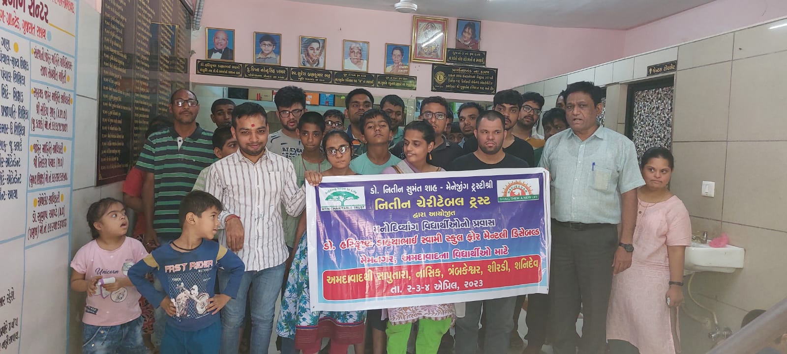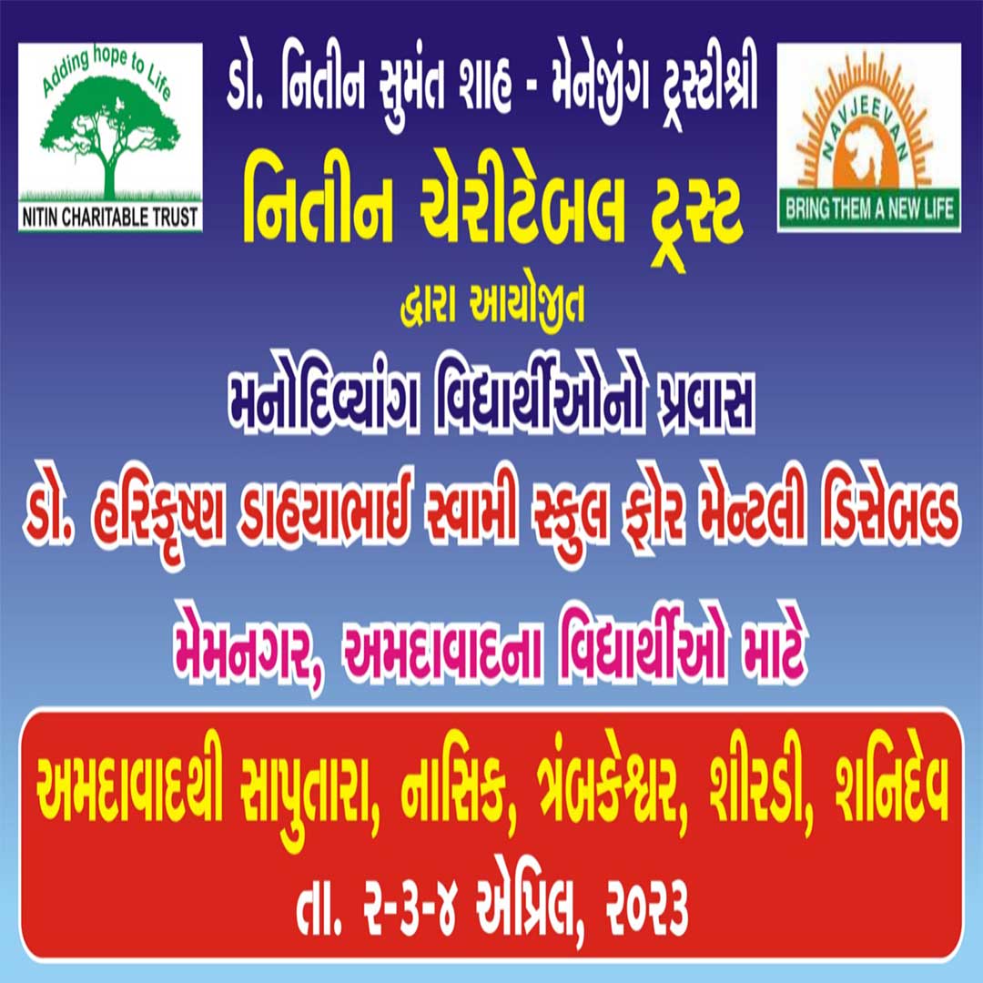વર્લ્ડ ઓટીઝમ ડેની ઉજવણીની ભાગરૂપે નિતીન ચેરીટેબલ ટ્રસ્ટ નાં મેનેજીંગ ટ્રસ્ટી શ્રી ડો. નિતીન સુમંત શાહ તરફ થી નવજીવન ચેરીટેબલ ટ્રસ્ટ સંચાલિત ડો.હરિકૃષ્ણ ડાહ્યાભાઈ સ્વામી સ્કુલ ફોર મેન્ટલી ડિસેબલ્ડ નાં 50 જેટલા ઓટીઝમ અને #મનોદિવ્યાંગતા ધરાવતા વિદ્યાર્થીઓ ને સાપુતારા,નાસિક, ત્રંબકેશ્વર, શિરડી અને શનિદેવ નાં દર્શનાર્થે લઇ જવામાં આવ્યા હતા.આ બાળકો સુખ શાંતિ પૂર્ણ પ્રવાસ પૂર્ણ કરીને પાછા આવી ગયા છે. મનોદિવ્યાંગ બાળકોએ આ પ્રવાસમાં ખૂબ જ મજા કરી હતી.
